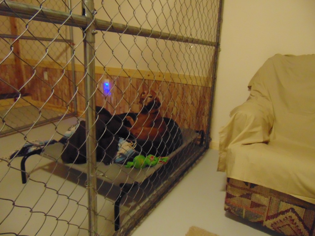 Great for dogs who don’t do well in boarding facilities. The big difference between us and a boarding facility is that we are usually able to keep it just for your dog(s). This is a lot quieter and less stress than in a large kennel but we provide the same kind of safety and more. Large separate kennel areas. All inclusive, no extra fees for supervised playtime and walks on leash. Dogs must be spayed or neutered (unless puppies) and proof of current vaccinations must be provided (distemper combo, kennel cough and rabies). Dogs must also be current with flea and tick preventative. If a dog seems ill when dropping off, we reserve the right to refuse boarding.
